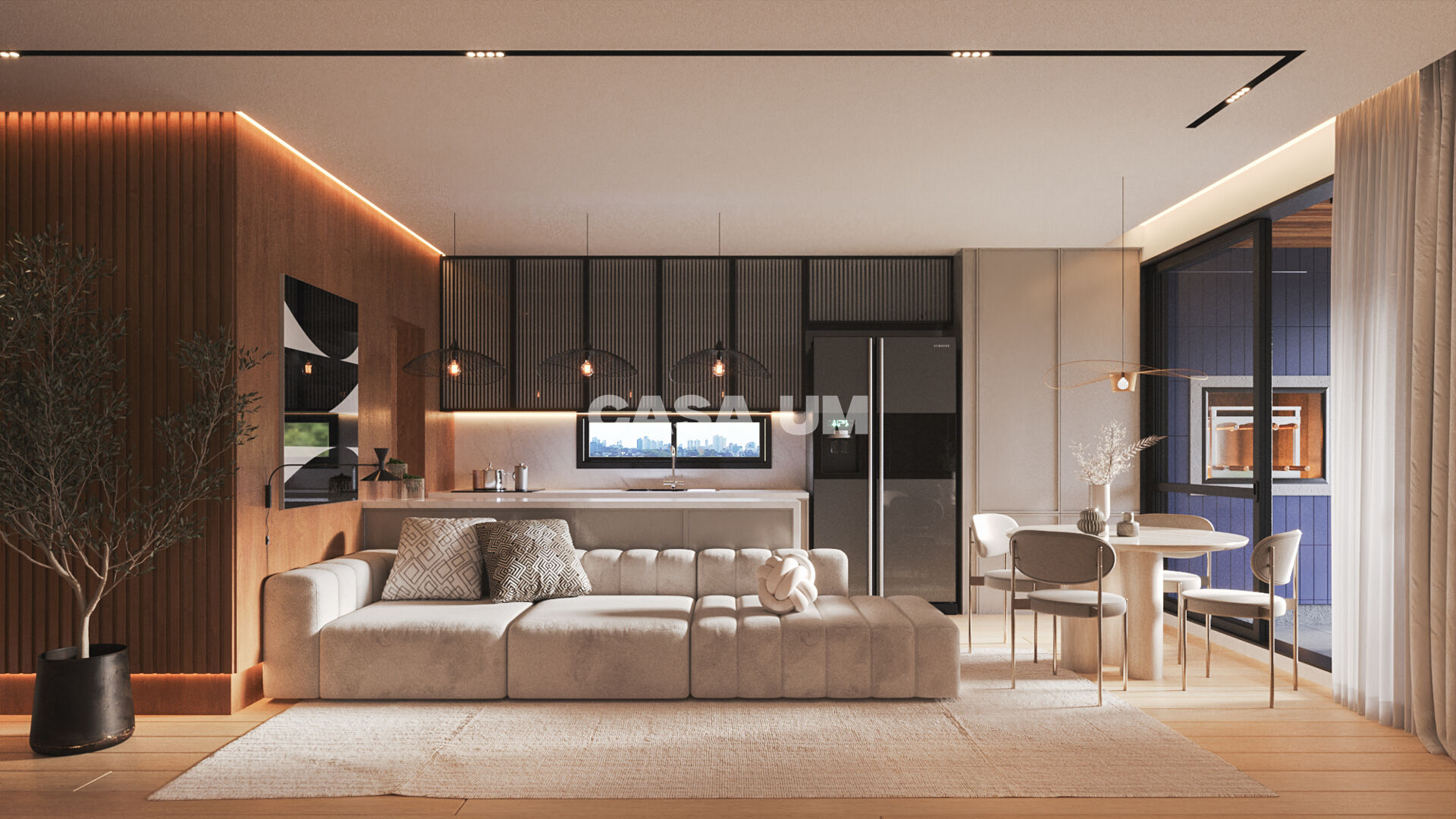 - Sala de estar e jantar integradas em conceito aberto;