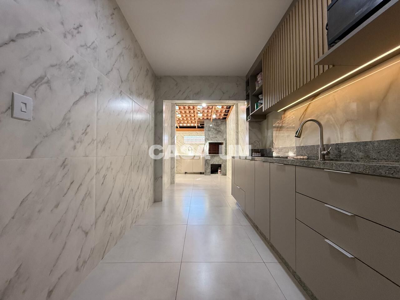 • Banheiro social com pia em mármore;